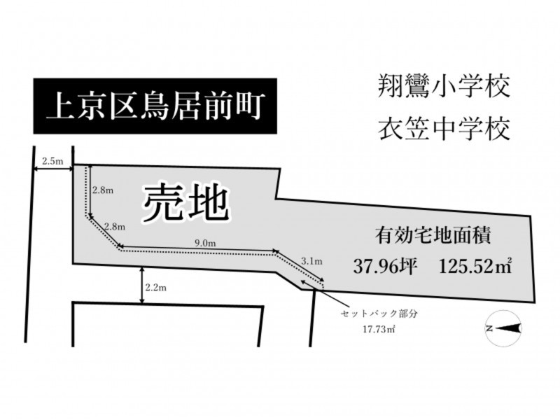 - 御前通今出川上る鳥居前町 上下水道間の引込要す 有効面積125.52㎡