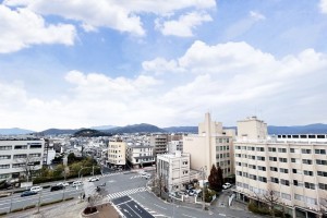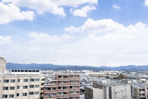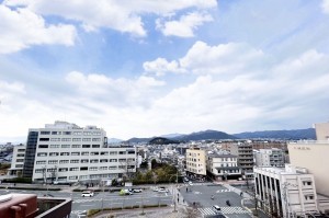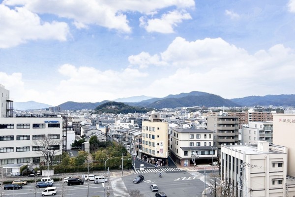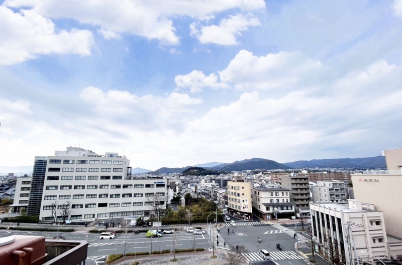 10階建ての8階部分、南側に広がるバルコニーからは、京の街並みを一望できる開放的な景色が広がります。