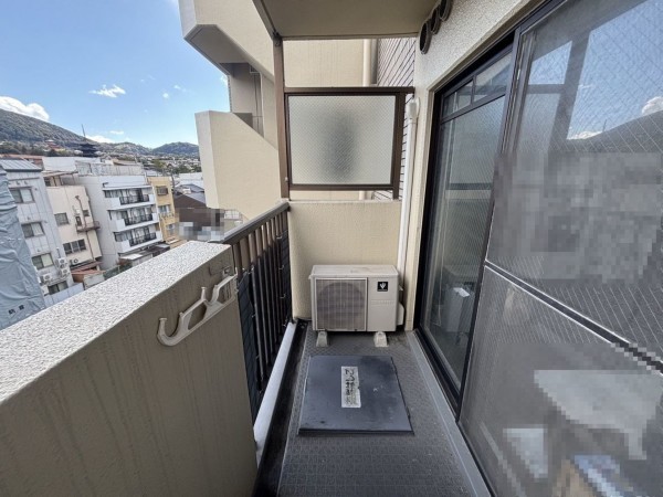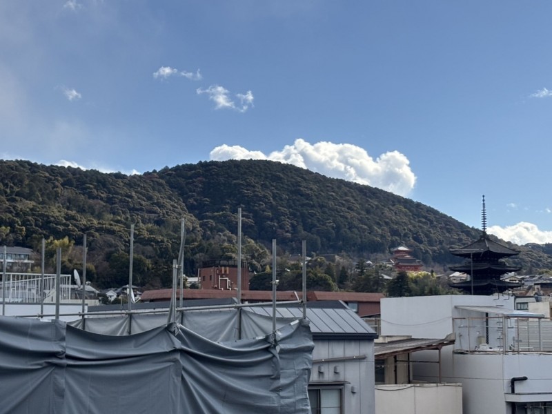バルコニーより東山の山並み、八坂の塔、清水寺が望めます。