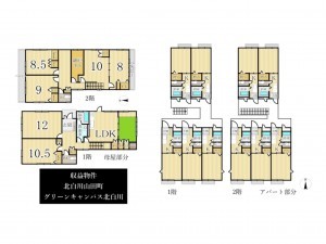 - 7SLDK(居宅)+1K10室(共同住宅)